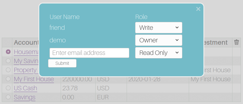 You may choose to share one account with your partner and another with your flatmates. You may even have a shared investment asset with a friend or business partner.